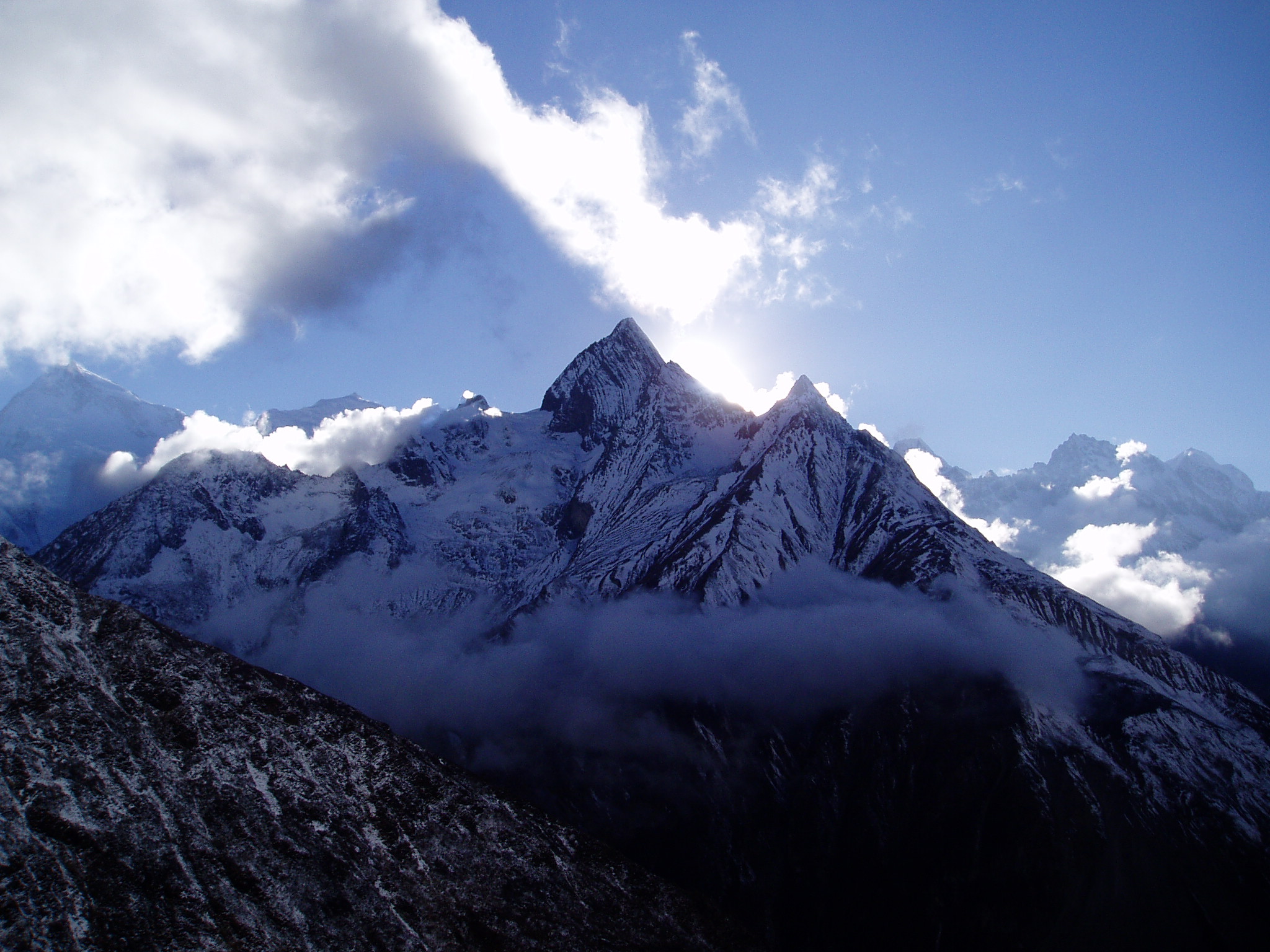 At last, we access Annapurna Base Camp to enchant on 360-degree view of several snow sparkling peaks from Annapurna Base Camp, including annapurna south ;3230m and mount machhapuchhre or mount fishtail which is ;6998m hight, mount fidhtail has never been climbed. With dazzling vision of sparkling snow peaks on sunrise from Annapurna Base Camp ;4130m, we can see annapurna south ;7219m, east annapurna glacier,Annapurna III ;7575m, Annapurna IV ;7535m, Annapurna II ;7937m and mount gangapurna approximate ;7000m and above,